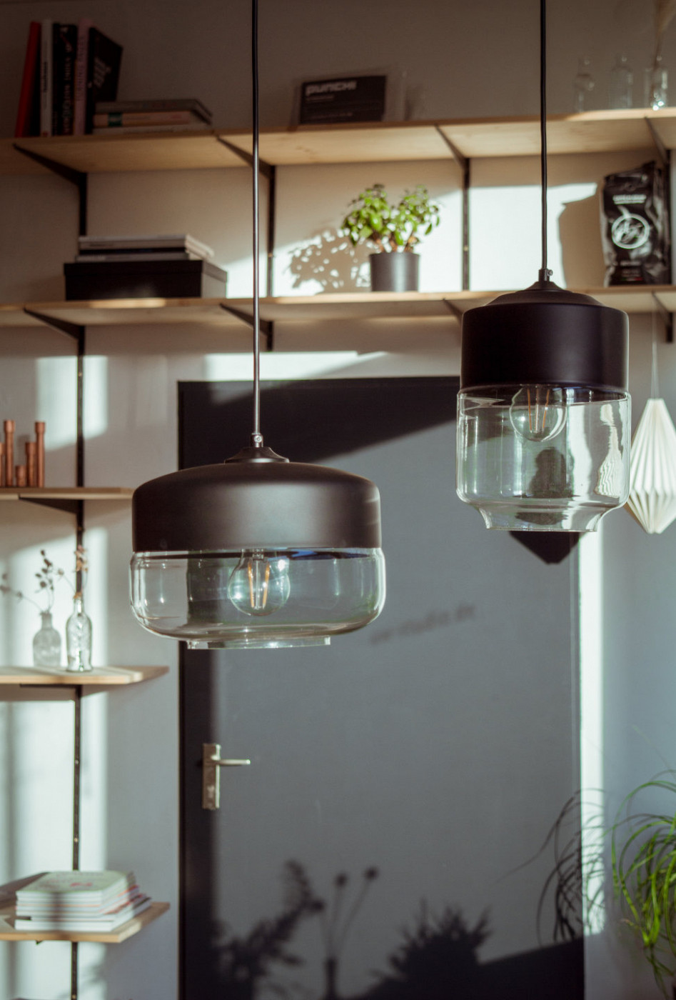 Das Gemeinschaftsbüro in der Alten Mu haben wir durch ein Redesign zu einem multifunktionalen Arbeitsraum umgestaltet. Zwei raumhohe Trennwände aus hellen Holz-Lamellen, die mit grünen Pflanzen bestückt sind, gliedern den Raum in Küchen-, Arbeits-, und Konferenzbereich. Zudem bietet ein um die Ecke laufendes Wandregalsystem viel Flexibilität und Stauraum. Die Kombination aus hellem Holz und Anthrazit lässt den Raum elegant, modern und gleichzeitig wohnlich wirken. Hochwertige Details in Form von Designerlampen und Freischwinger aus Wiener Geflecht runden das Ensemble ab.